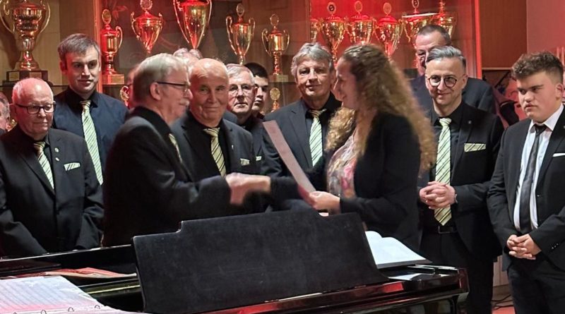 Die Verbandschorleiterin des Chorverbands Bruchsal Sarah Maria Bahr nahm im Anschluss die Auszeichnung von zwei langjährigen Sängern vor: Walter Streit erhielt für 25 Jahre und Werner Käpplein für ganze 40 Jahre aktives Singen im Chor eine Urkunde des Badischen Chorverbands.